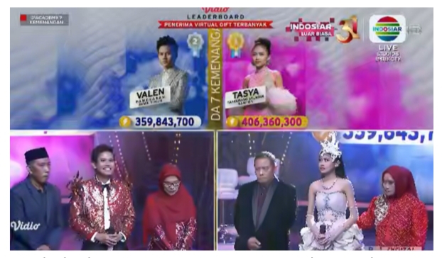 “Pandangan dan opini publik tentang virtual gift yang sanggup menghasilkan miliaran rupiah hanya dalam semalam. Tasya, peserta dari Tangerang Selatan (Tangsel) yang seharusnya juara 2 tiba-tiba lolos menjadi juara 1 dan menjadi kecaman nitizen karena menurutnya juara dari hasil virtual gift,” ungkap Hosen.