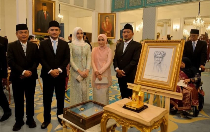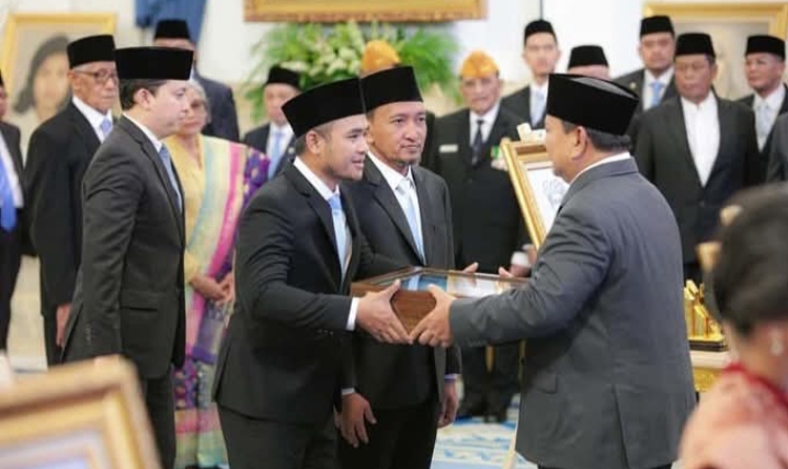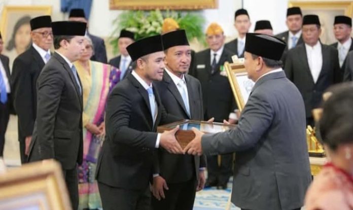 JAKARTA – Presiden Prabowo Subianto berikan gelar pahlawan nasional pada salah satu ulama besar Syaikhona Mohammad Kholil Bangkalan Madura Jawa Timur di Istana Negara. Nampak hadir Ra Imron Amin Anggota DPR RI di dampingi Moh Fauzan Jakfar Wakil Bupati Bangkalan dalam prosesi upacara penganugerahan gelar pahlawan nasional.