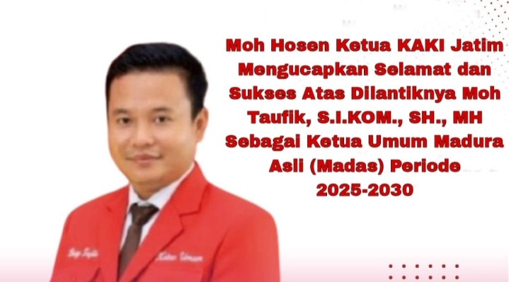 Menyikapi hal ini, Moh Hosen Ketua Komite Anti Korupsi Indonesia (KAKI) Dewan Pimpinan Wilayah Provinsi Jawa Timur mengucapkan selamat dan sukses atas dilantiknya Bung Taufik sebagai ketua umum Madas perubahan, semoga Amanah dan mampu membawa nama Madura lebih baik," Ujarnya, Ahad (12/10/2025).
