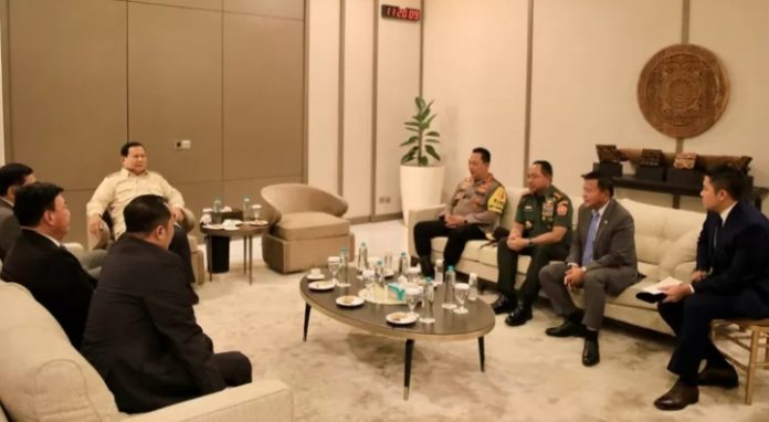 JAKARTA – Presiden Prabowo Subianto menggelar pertemuan dengan Kepala Kepolisian Negara Republik Indonesia Jenderal Polisi Listyo Sigit Prabowo di Pangkalan Tentara Nasional Indonesia Angkatan Udara Halim Perdanakusuma, Jakarta Timur, Sabtu (25/10/2025).