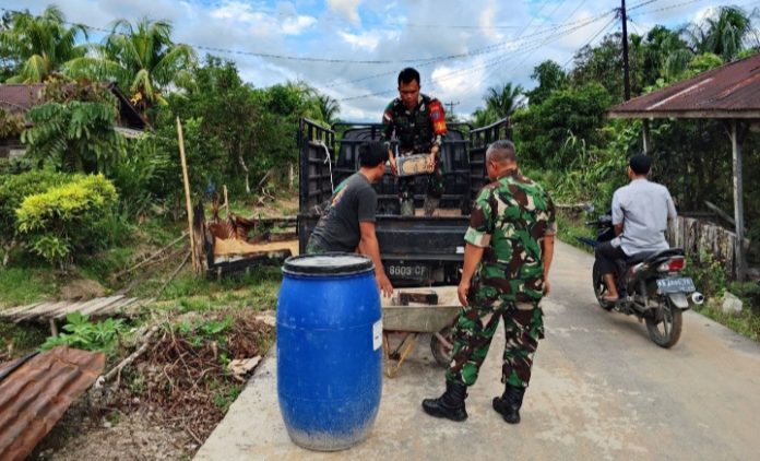 Sambas – Anggota Satgas TNI Manunggal Membangun Desa (TMMD) ke-126 Kodim 1208/Sambas terus menunjukkan semangat gotong royong dalam mempercepat penyelesaian sasaran fisik. Kali ini, para prajurit bersama warga setempat bergotong royong mengangkut keramik yang akan digunakan untuk pembangunan MCK Rumah Tidak Layak Huni (RTLH) Milik Bapak Mintoni (37) yang berada di Desa Ratu Sepudak, Kecamatan Galing.